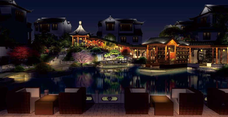 株洲江苏无锡桃花源中式合院样板区亮化设计