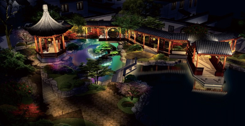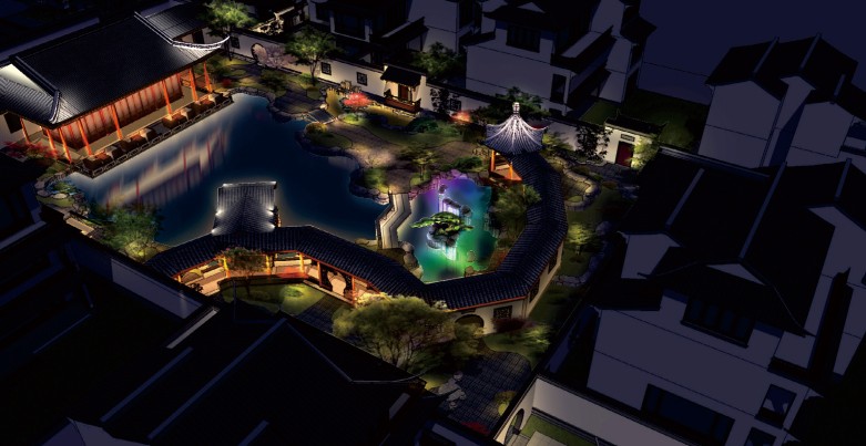 衡阳江苏无锡桃花源中式合院样板区亮化设计