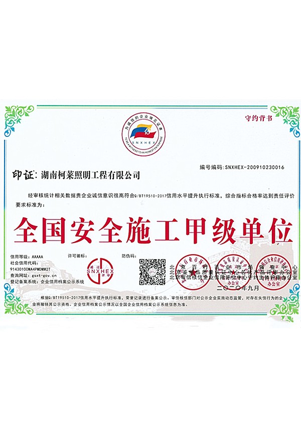 全国安全施工甲级单位